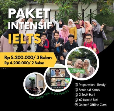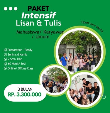 Fokus: speaking confidence, daily conversation, dan kebutuhan kerja/ kuliah/ keseharian.