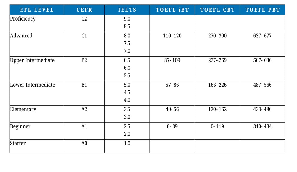 Berdasarkan Cambridge English, di bawah ini adalah ikhtisar dari definisi tingkat