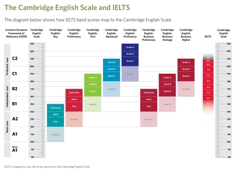 IELTS** is mapped to the Cambridge English Scale, but will continue to use the existing nine-band scale for reporting results.