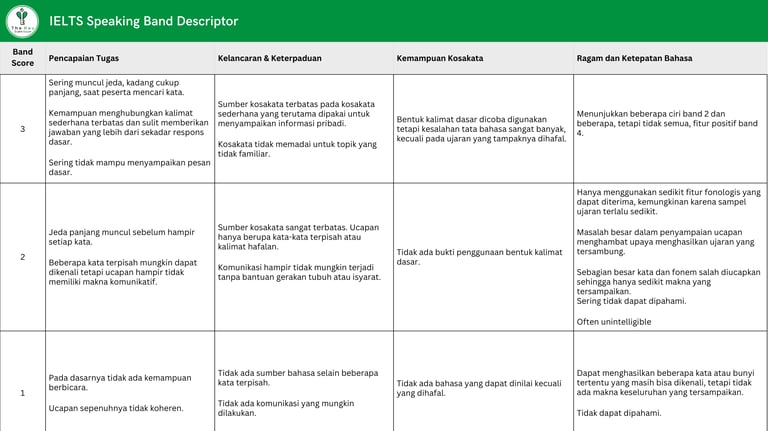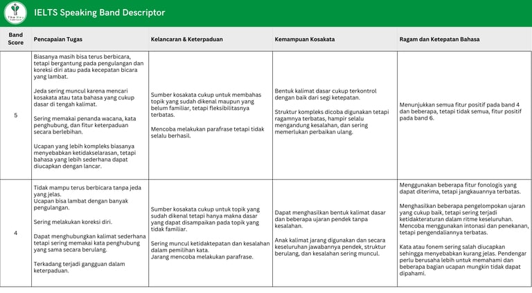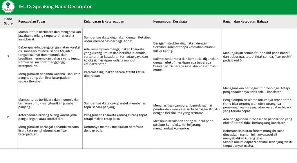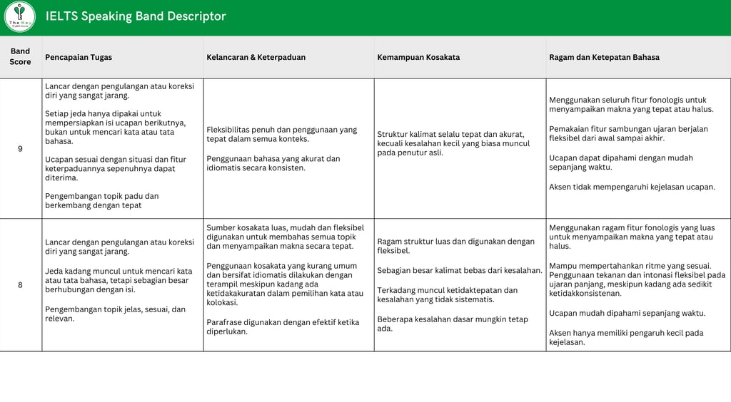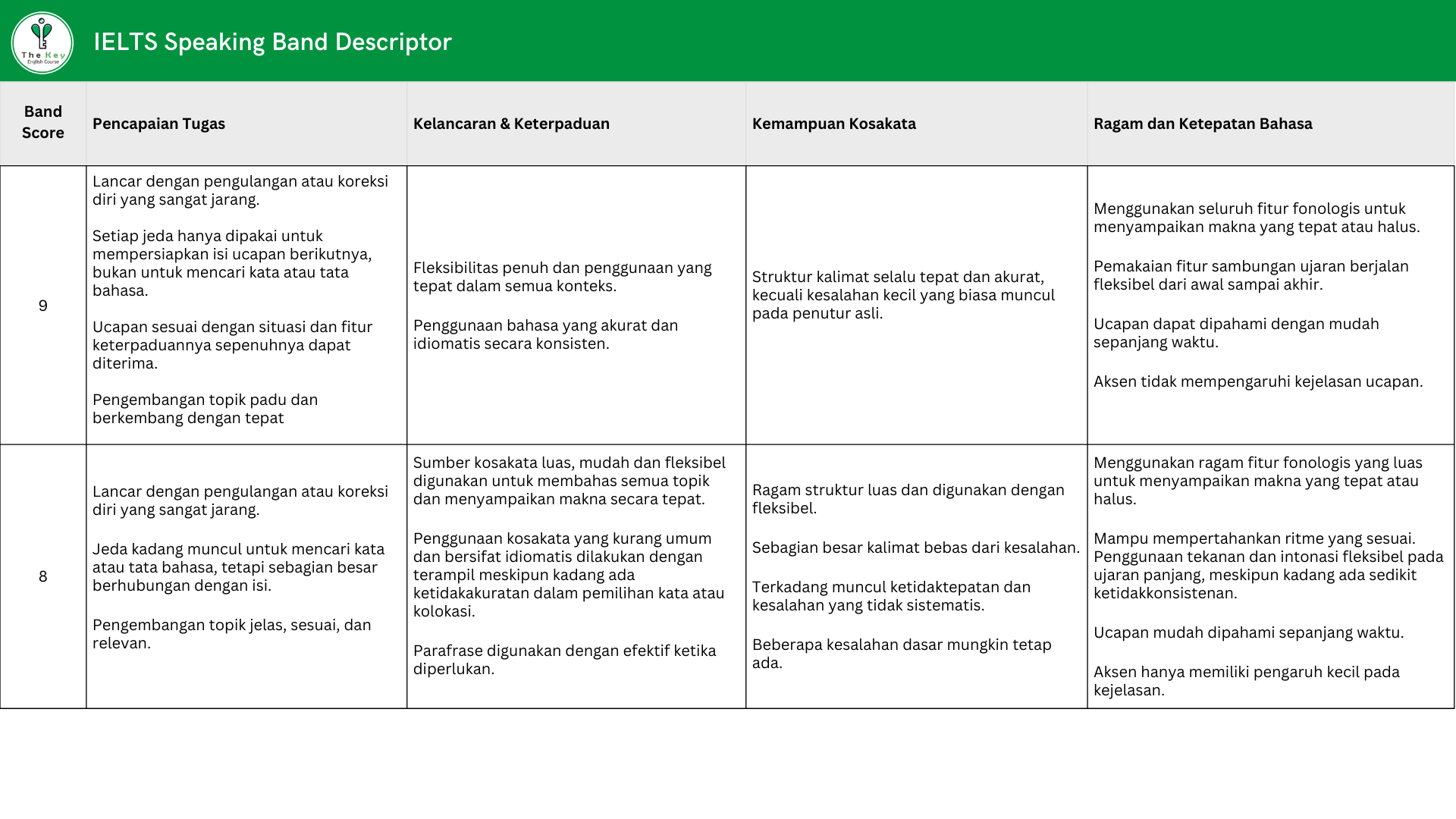 (i) Seorang kandidat harus sepenuhnya memenuhi ciri-ciri positif dari deskripsi pada tingkat tertentu.